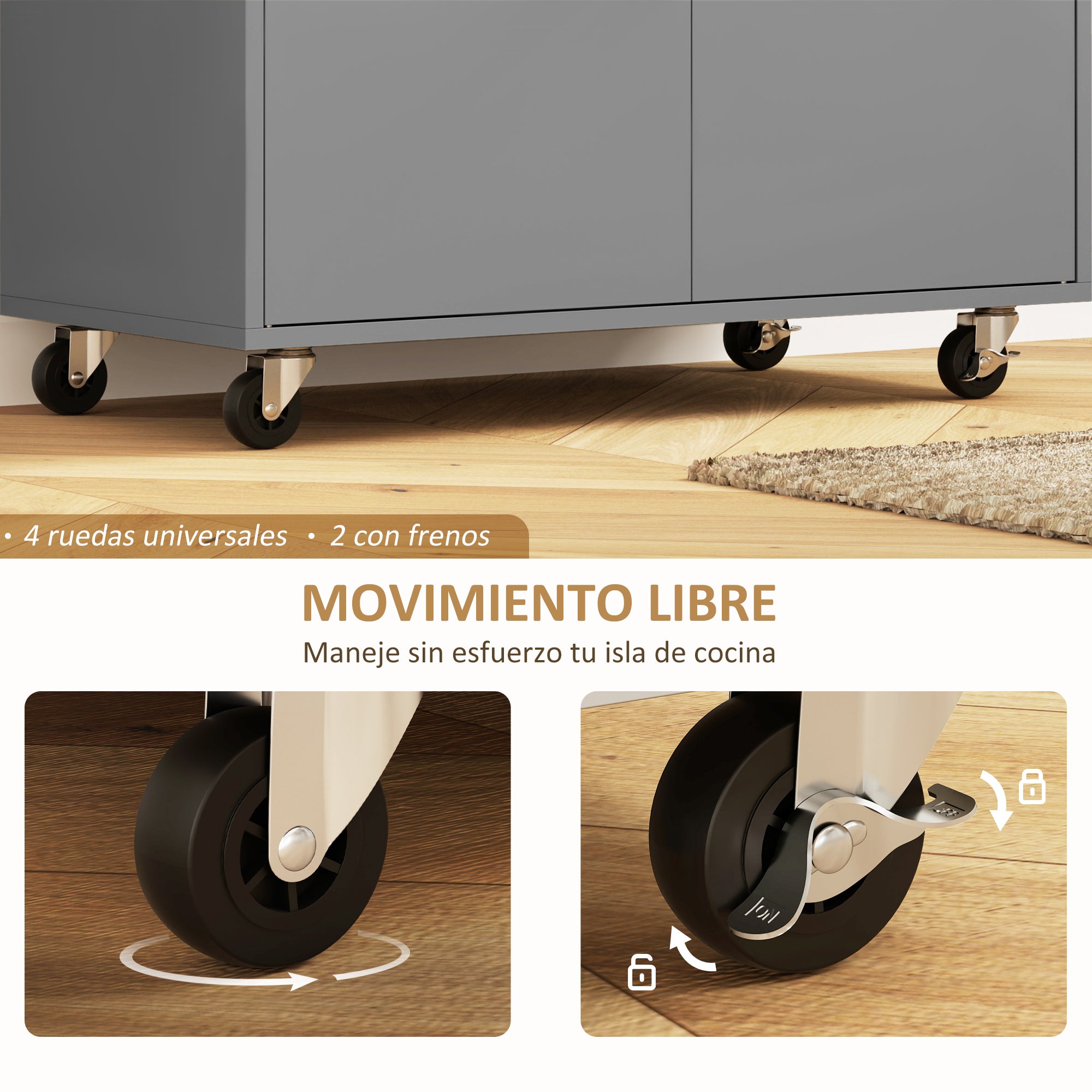 - - ENKEL ATT FLYTTA OCH LÅSA: Med fyra 360° svängbara hjul, två med bromsar, kan du enkelt flytta denna kökvagn och låsa den på plats. Den hängande baren fungerar också som ett handtag.