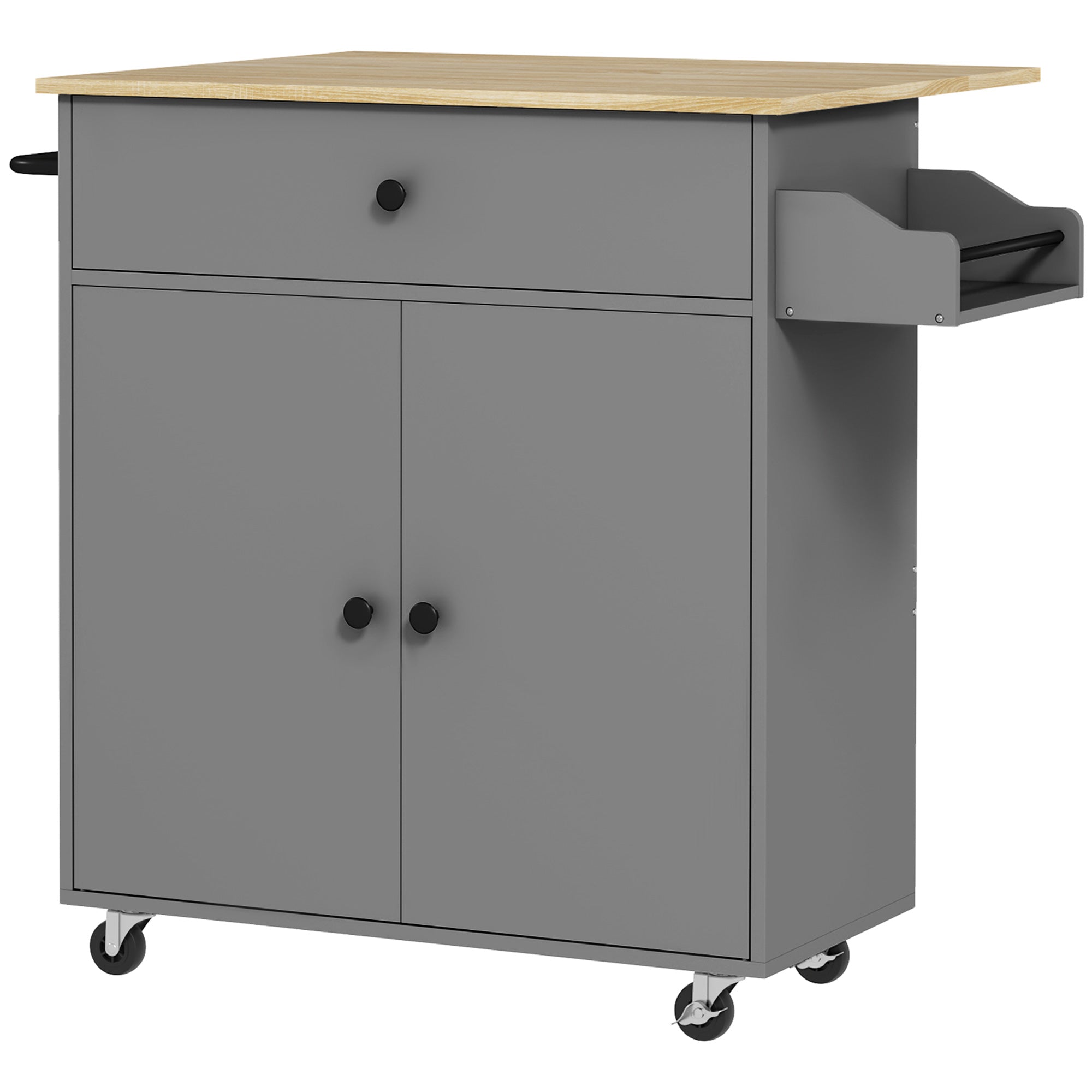 HOMCOM Kökö med Fällbart Lok med Kökvagn, Kök Utility Vagn med Hjul, 2 Dörrar, Låda, Kryddställ, Handdukshylla och Justerbar Hylla 106x42x87 cm Grå och Ek