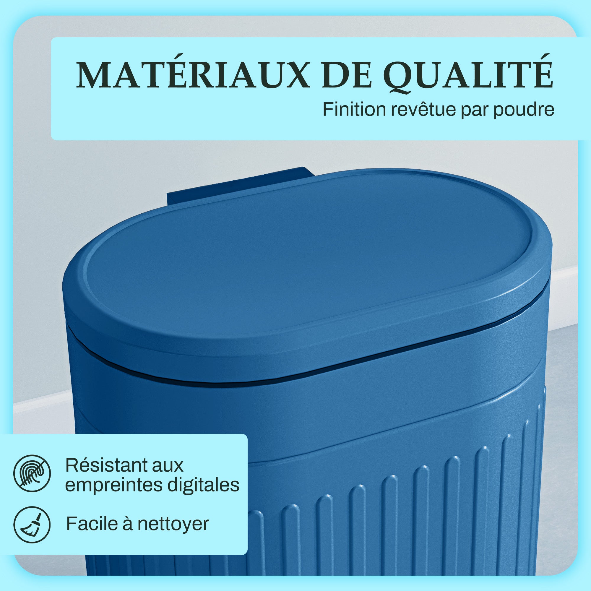 HOMCOM Kökssoptunna, 20L, Pedalsoptunna, Oval, Metall med Självstängande Lock, Fingeravtrycksbeständig, Avtagbar Inre Hink, 36,5 x 31,2 x 45 cm, Blå