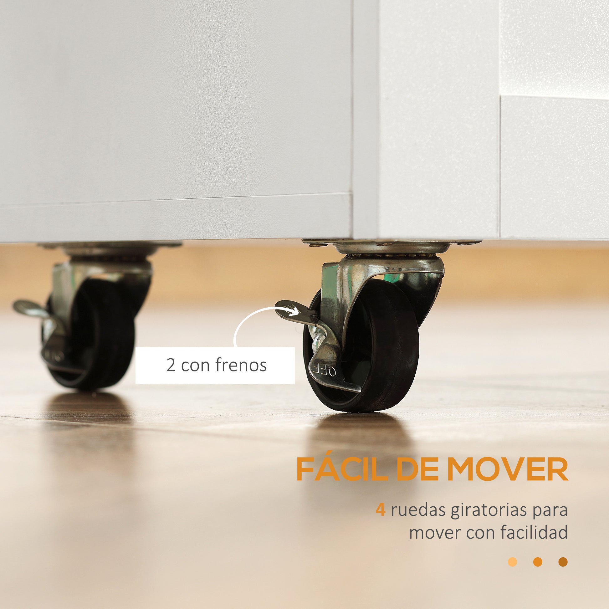 HOMCOM Köksvagn med 1 Låda 2 Dörrar Handdukshängare och Kryddhylla Serveringsvagn med Hjul för Matrum Vardagsrum Bar Lastkapacitet 80 kg 105x36x85 cm Vit