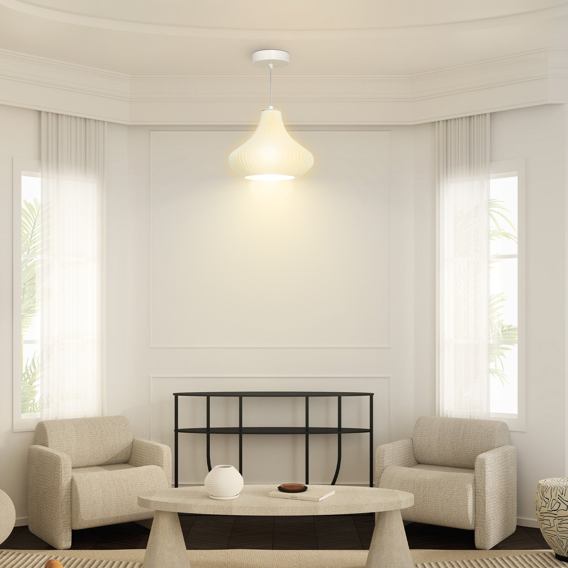 HOMCOM Modern Taklampa E27 med 3D-tryckt skugga för Matrum, Kök, Vardagsrum, Bar och Restaurang - Vit