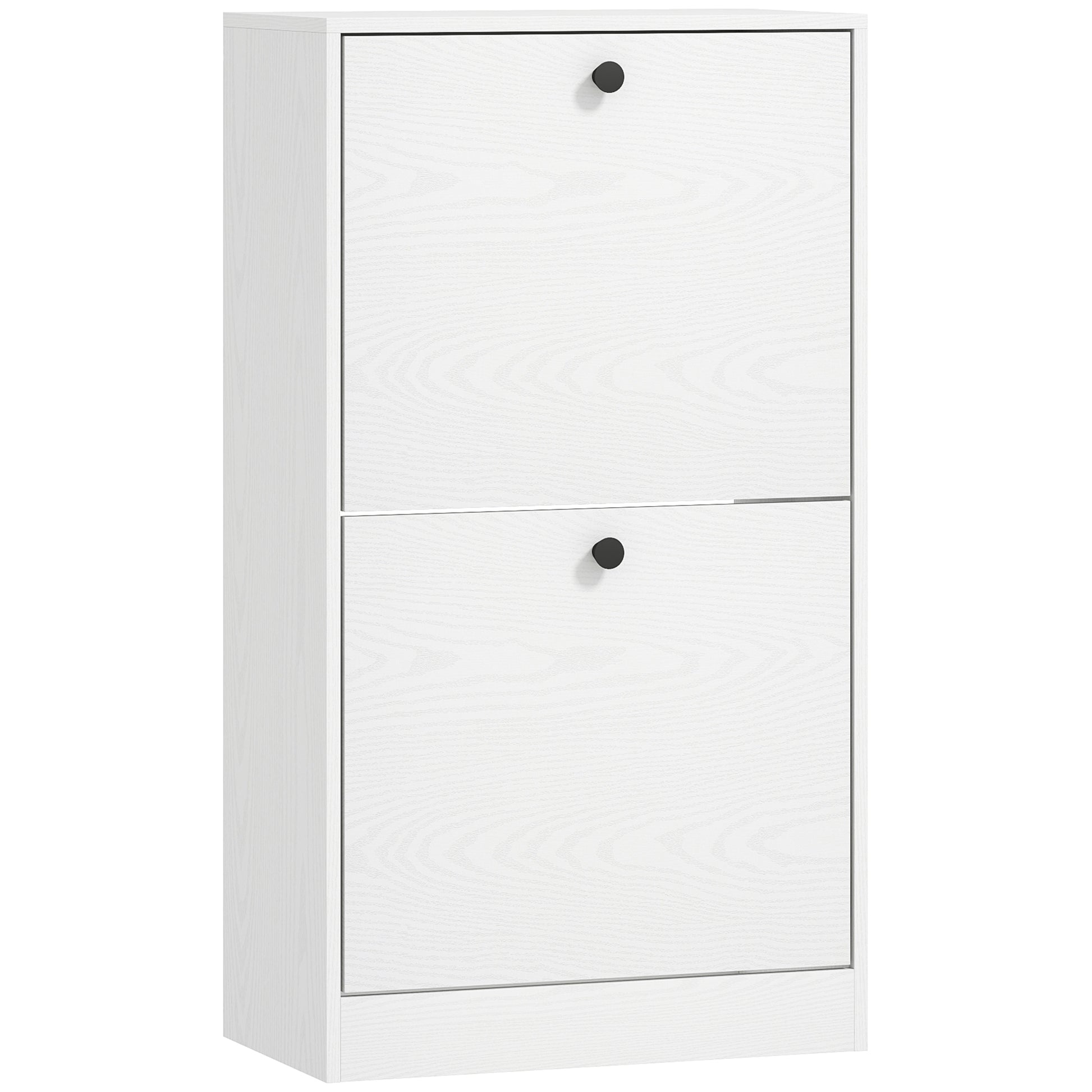 HOMCOM Smal Skoskåp med 2 Vikdörrar - Skåp för Skor i Entrén med Justerbara Hyllor för 8 Par Skor för Smala Hallar 47x26x85 cm Vitådrad