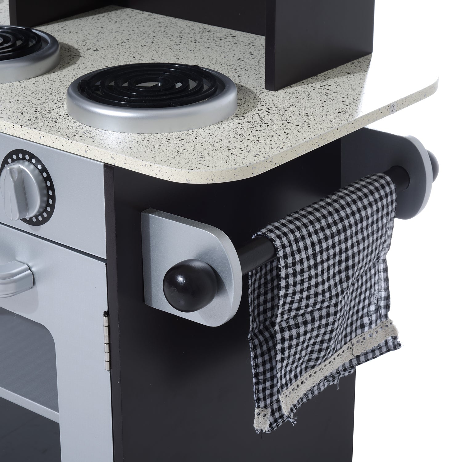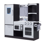 HOMCOM Stort Trälekekök för Barn över 3 År med Tillbehör - Leksakskök med Mikrovågsugn och Diskho 105x31,5x95 cm Silver och Mörkbrun