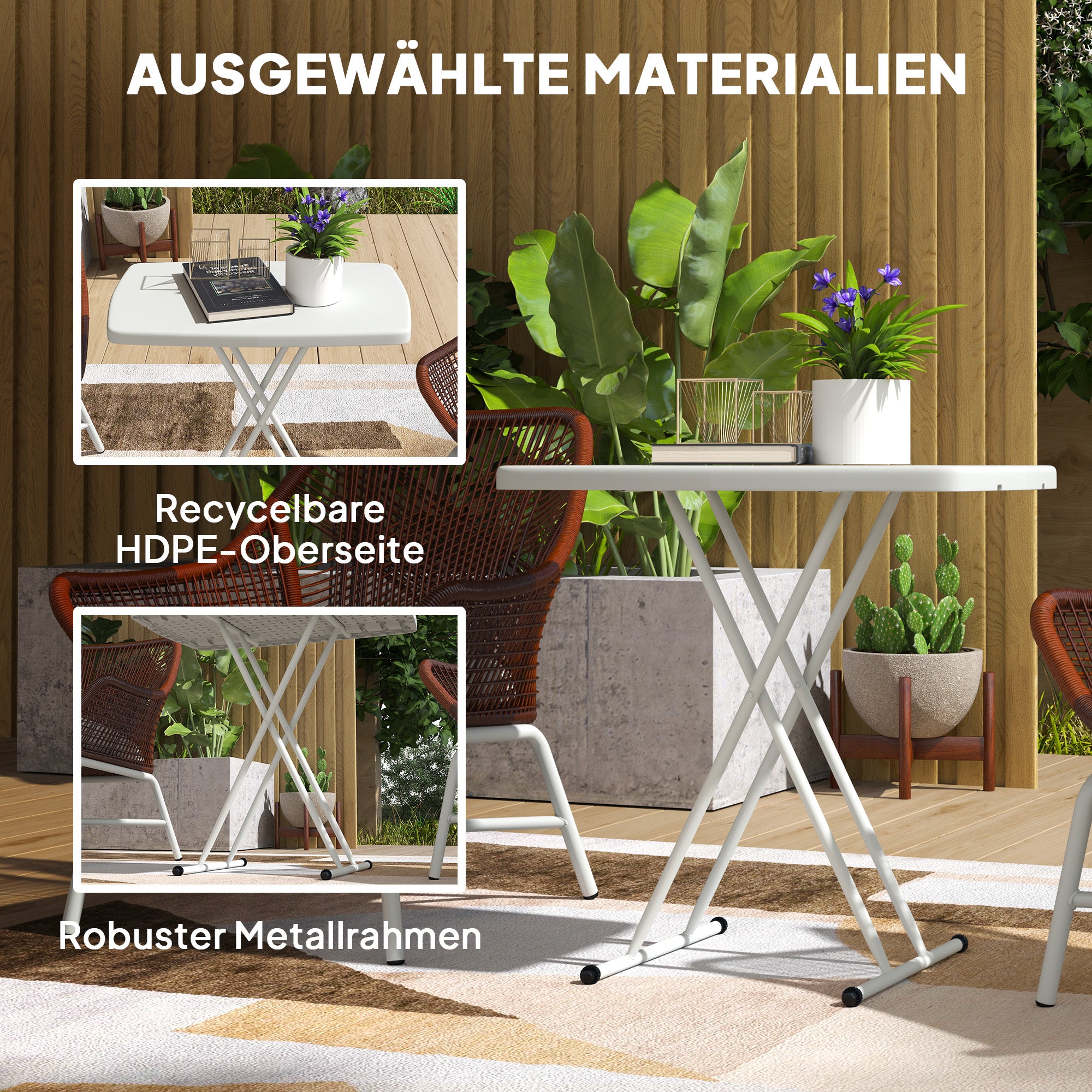 Outsunny Balkongbord Justerbar Höjd Utomhusbord, Fällbart Plastbord, Rektangulärt Kaffebord 50 kg Kapacitet, 76x50x74H cm Kaffebord för Utomhus Inomhus Balkong Terrass Vit