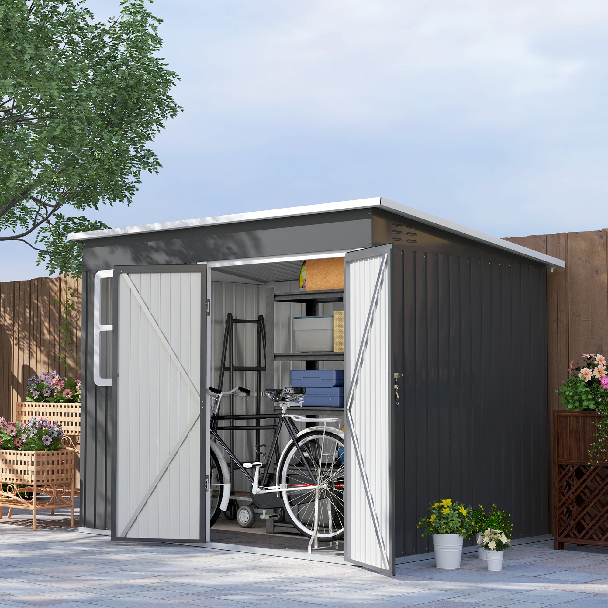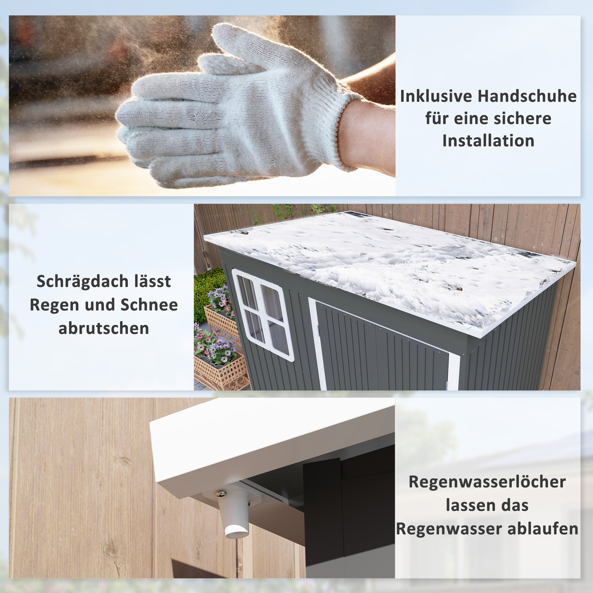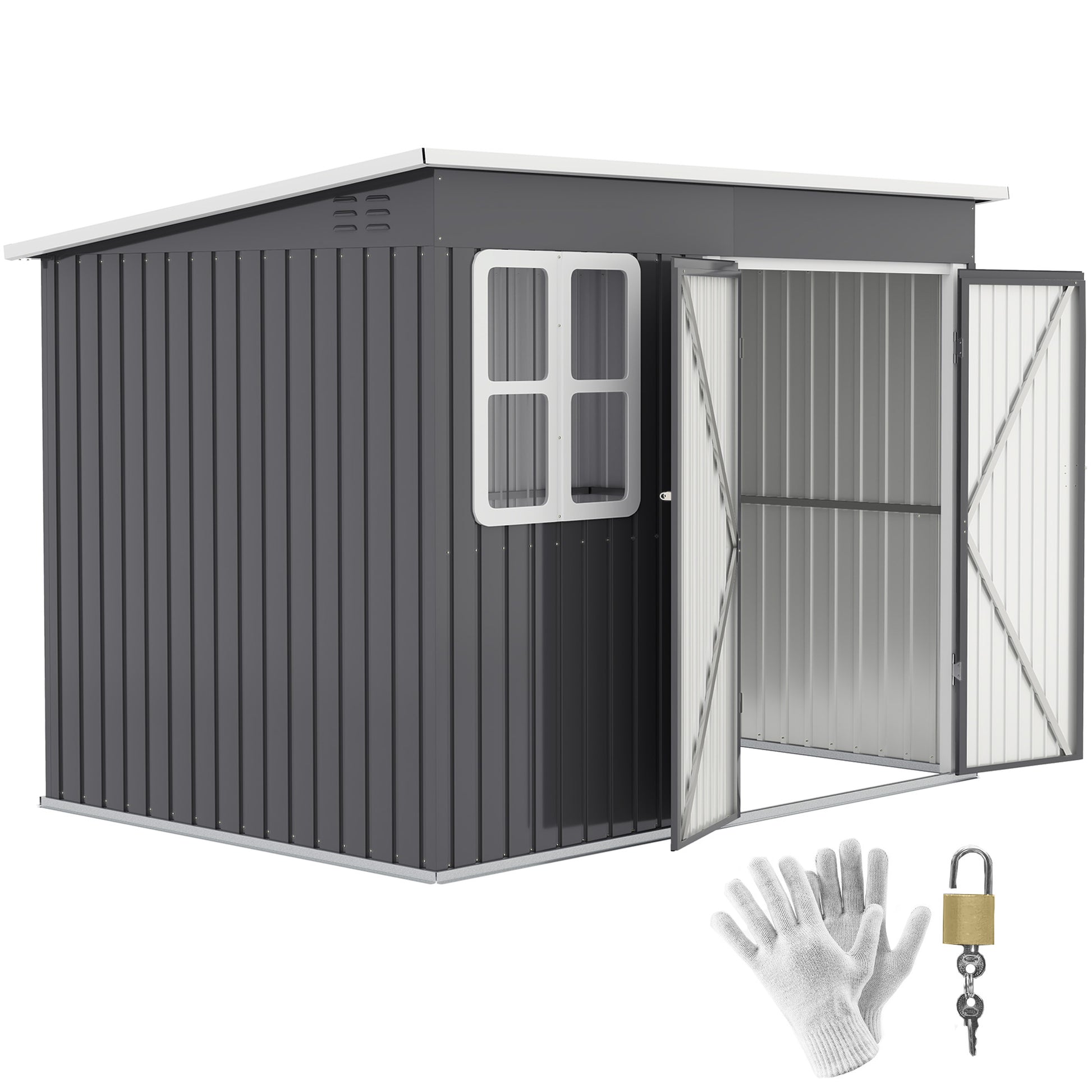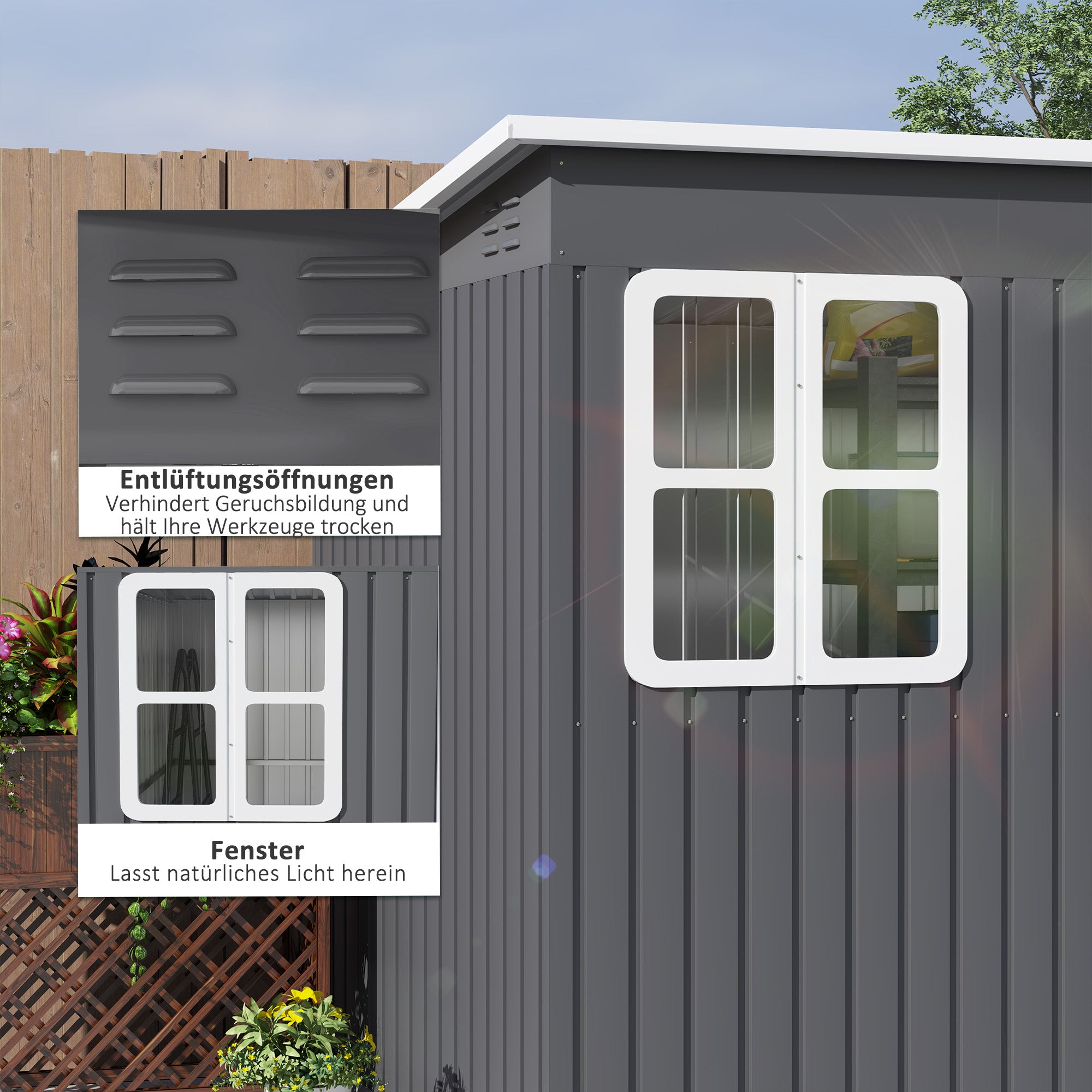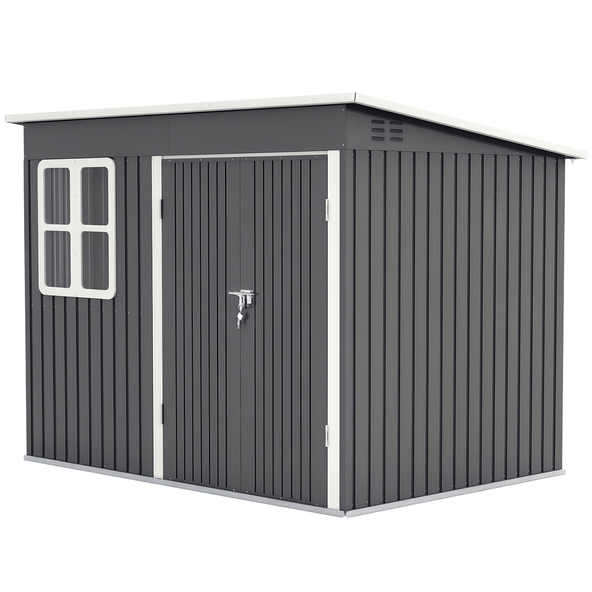 Outsunny Metallverktygsskjul 4,13 m² 260 x 177 x 190 cm Förvaringsskjul med Fönster och Pulpettak Låsbar Dörr Väderbeständigt Trädgårdshus Utomhus Skjul för Uteplats Mörkgrå