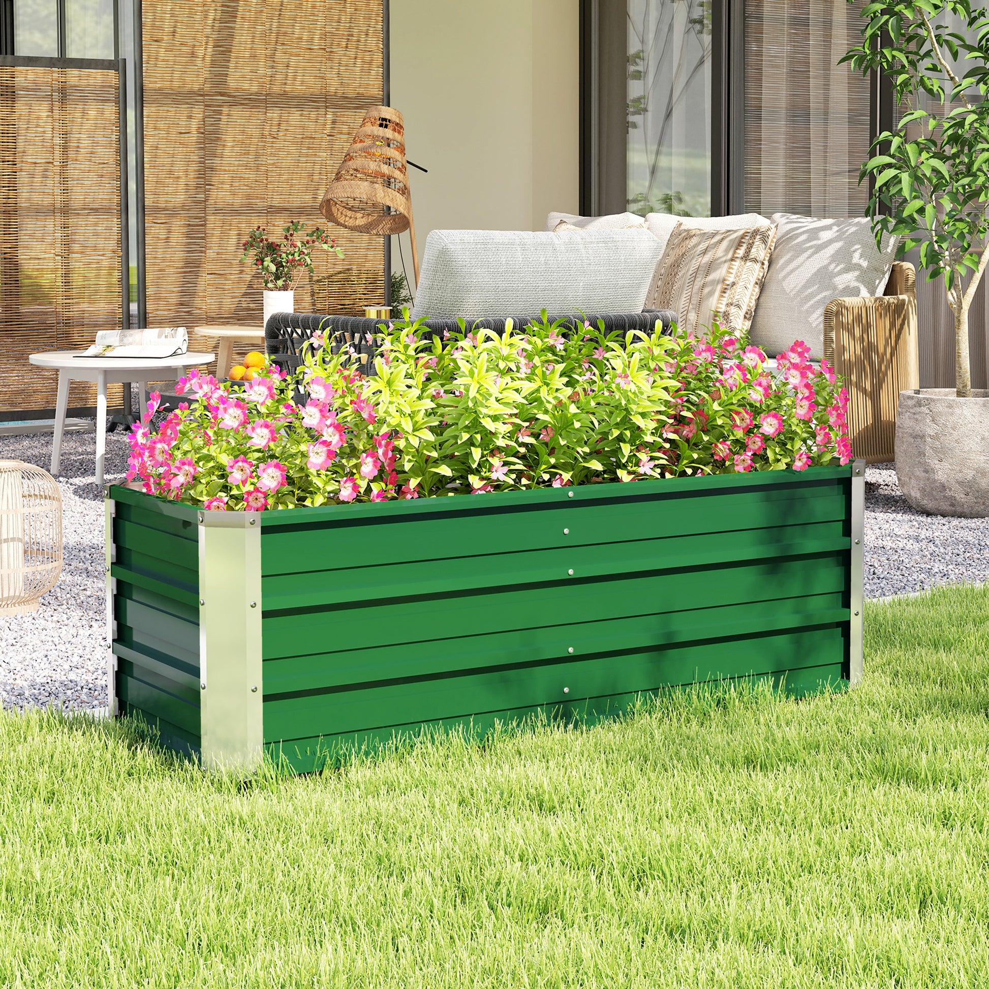 Outsunny Upphöjd Säng av Stål Trädgårdsplanteringslåda Blomlåda Med Handskar Grön 125 x 47 x 40 cm