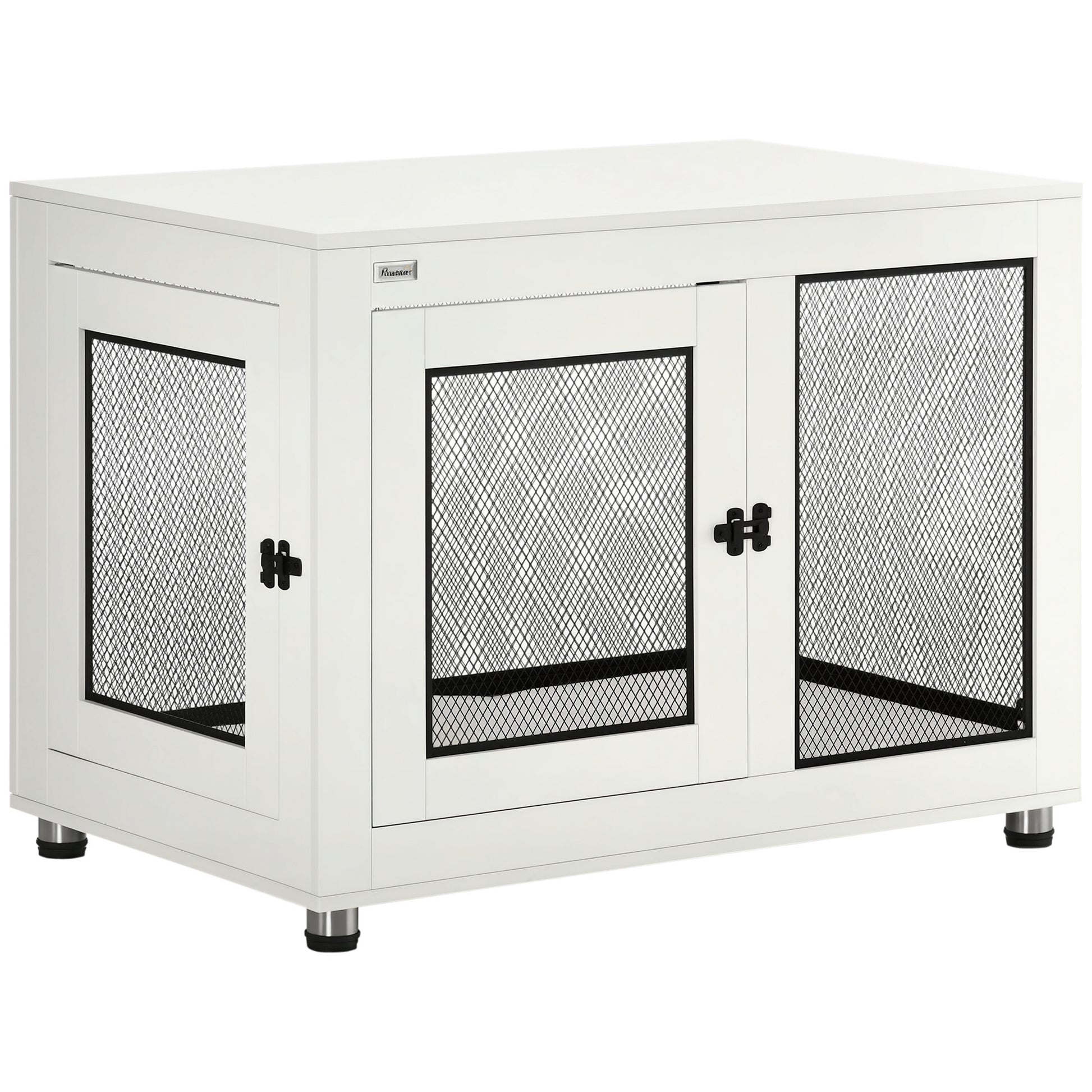 PawHut Hem Hundbur, Hundbur med 2 Dörrar, Tvättbar Kudde, Hundhus med Justerbara Fötter, Lås, för Stora Hundar upp till 30 kg, Vit, 94 x 60 x 71,5 cm