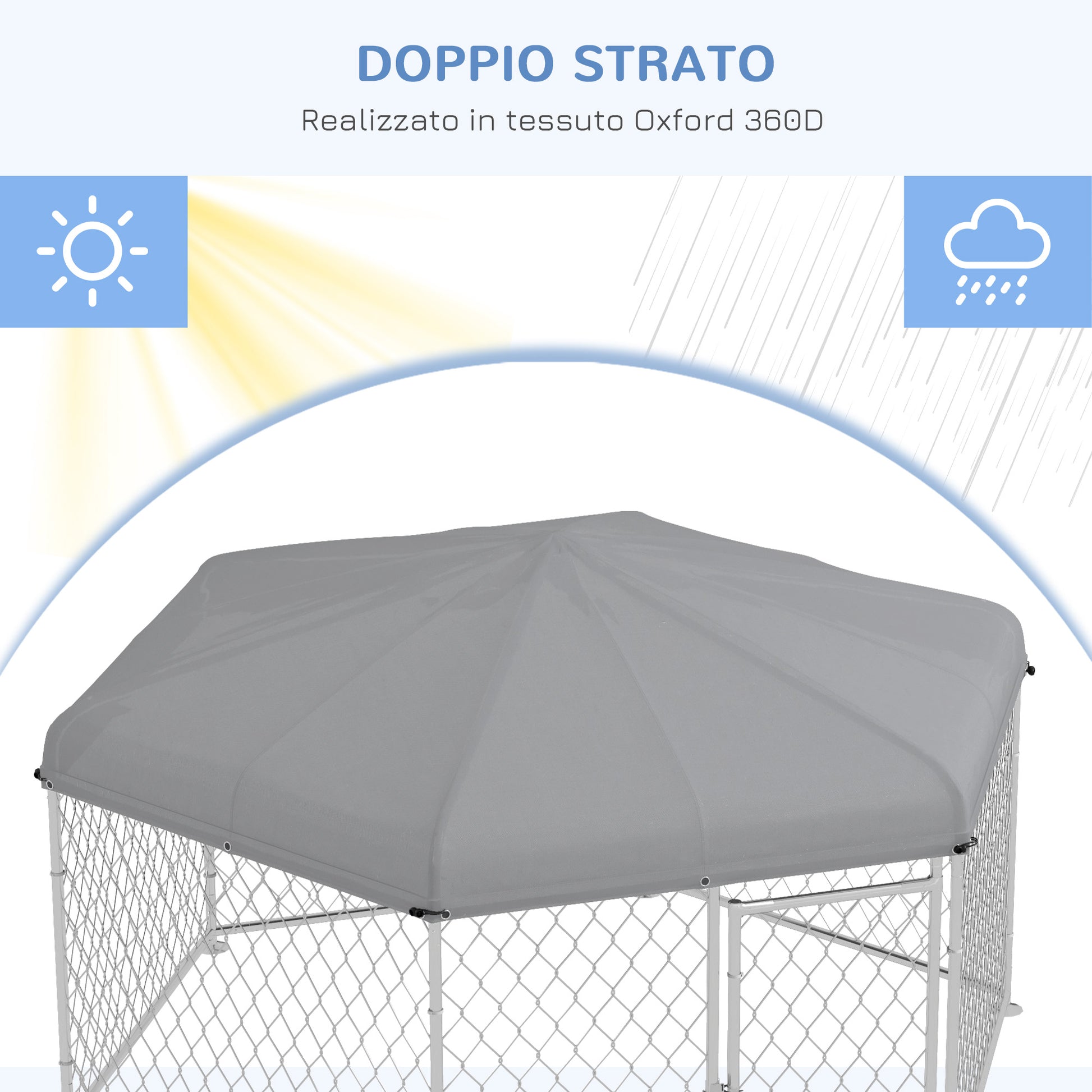 PawHut Stort Hundhus, Sexkantigt Hundhus med Oxford-tyg och UV-resistent Tak 2.1x1.85x1.5m, Silver och Grå