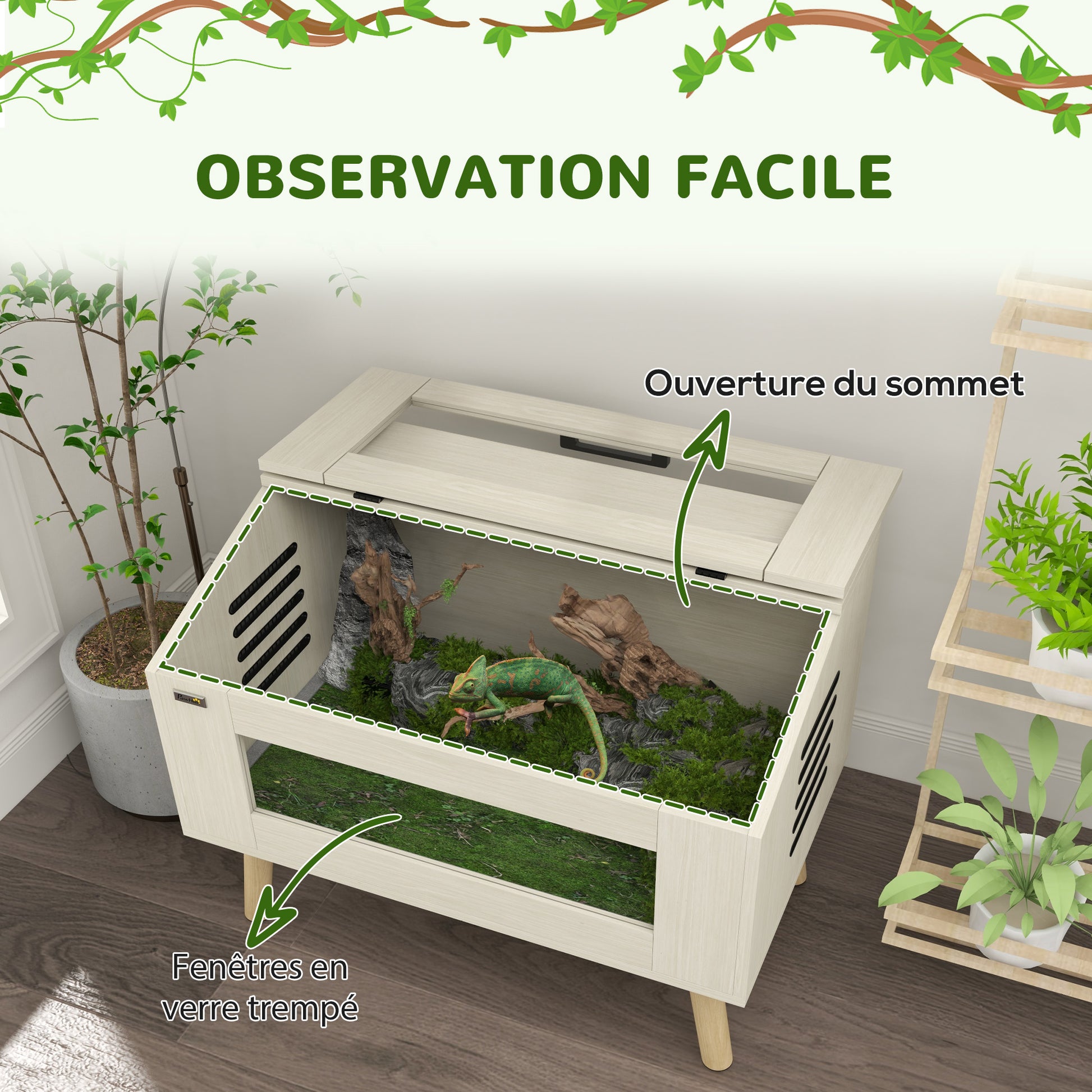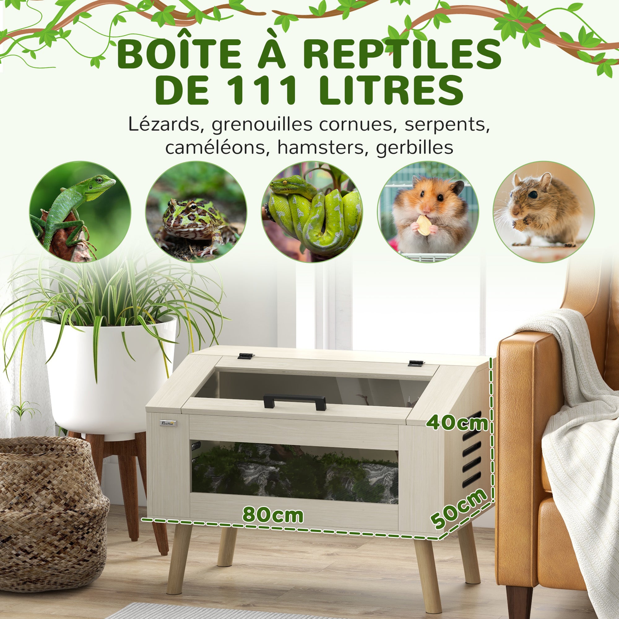 PawHut Reptilterrarium med Sidoventilation, Ormvivarium 111L med Härdat Glasfönster, Lock, 80 x 50 x 60 cm i naturligt trä